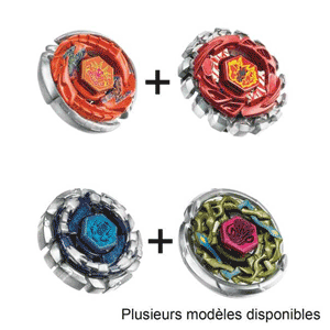 Chaque Beyblade se caractérise par des performances offensives, défensives, et d’équilibre. Chaque toupie s’accompagne d’un lanceur, d’une crémaillère et d’une clé d’assemblage. Le combat continue sur Internet. Grâce à la carte et son code d’accès internet inclus dans chaque blister, tu pourras tester ta toupie en ligne et affronter d’autres Beybladers. Deux toupies incluses pour :